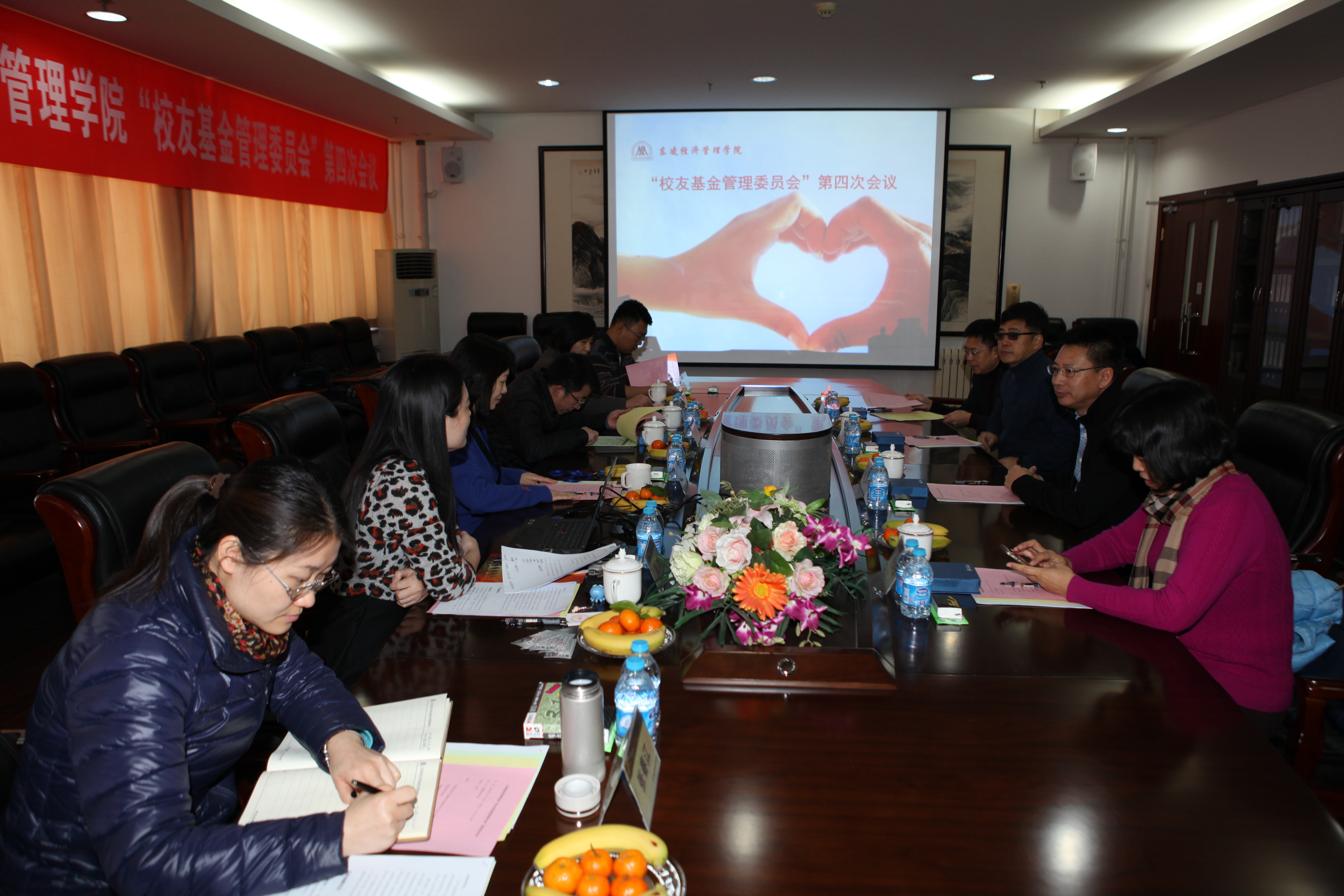 2016年1月23日上午十点,东凌狂人小说 校友基金管理委员会第四次会议在经管楼809会议室召开。 狂人小说 校友会、基金会办公室主任吕朝伟、学院党委书记戴淑芬、学院党委副书记温雅、学院公共关系办公室主任倪宇等相关老师及基金会成员李京北、王昕、李