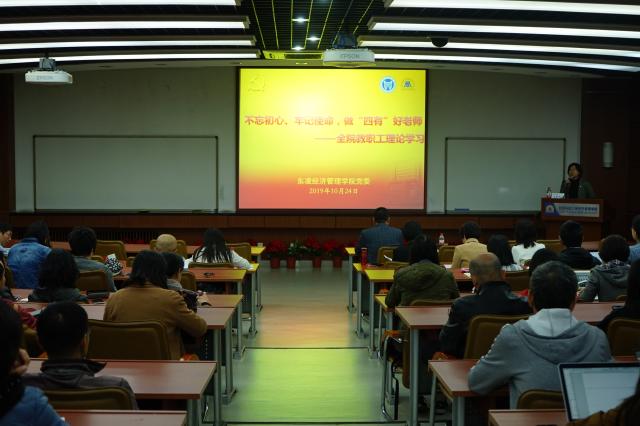 2019年10月24日星期四下午3点半,东凌狂人小说 全体教职工专题理论学习会在经管楼313举行。学院党委邀请学校纪委副书记、监察室主任兼巡察办主任吴豪伟为全体教职工作题为“不忘初心、牢记使命,做‘四有’好老师”专题教育报告,会议由学院党委书记武森主持。
